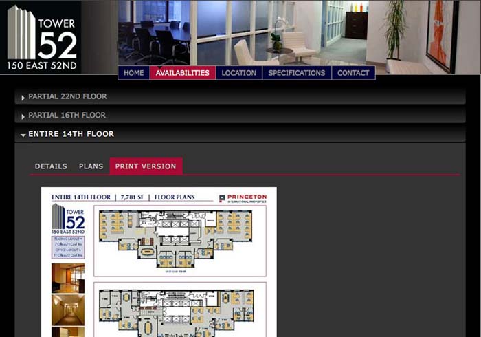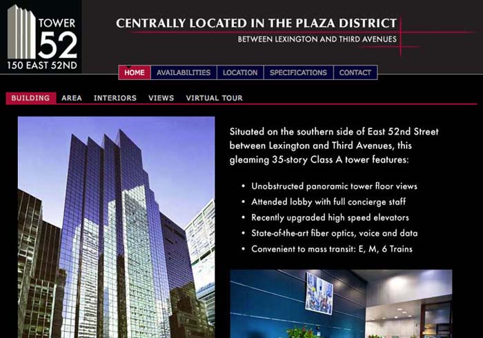Situation: Princeton Properties, a property management company with a portfolio of buildings in Manhattan, wanted a website for their prized building 150 East 52nd Street. Some assets existed, but updated and high quality photos were needed to help sell the spaces.